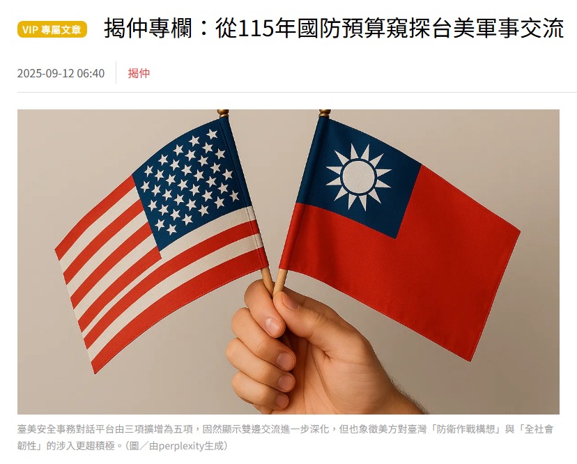 這雖然有利提升雙邊的「軍事互通性」(Military Interoperability),但有時符合美方利益的措施,卻未必是對我方最有利、有時還可能得不償失的措施,希望國安單位在必要時,還是應該據理力爭! (圖片擷取自風傳媒網頁)