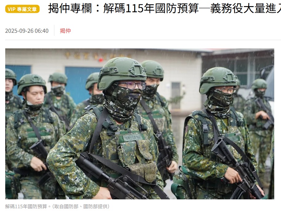 115年志願役士兵的預算員額大幅減少,不排除是因為近年志願役人員流失情形嚴重,導致主戰打擊部隊志願役人員的缺額居高不下,使國防部對靠志願役人員來填補主戰部隊的人力缺口,已不抱太大的希望,準備鼓勵更多一年期義務役人員前往主戰部隊服役。(圖片擷取自風傳媒網頁)
