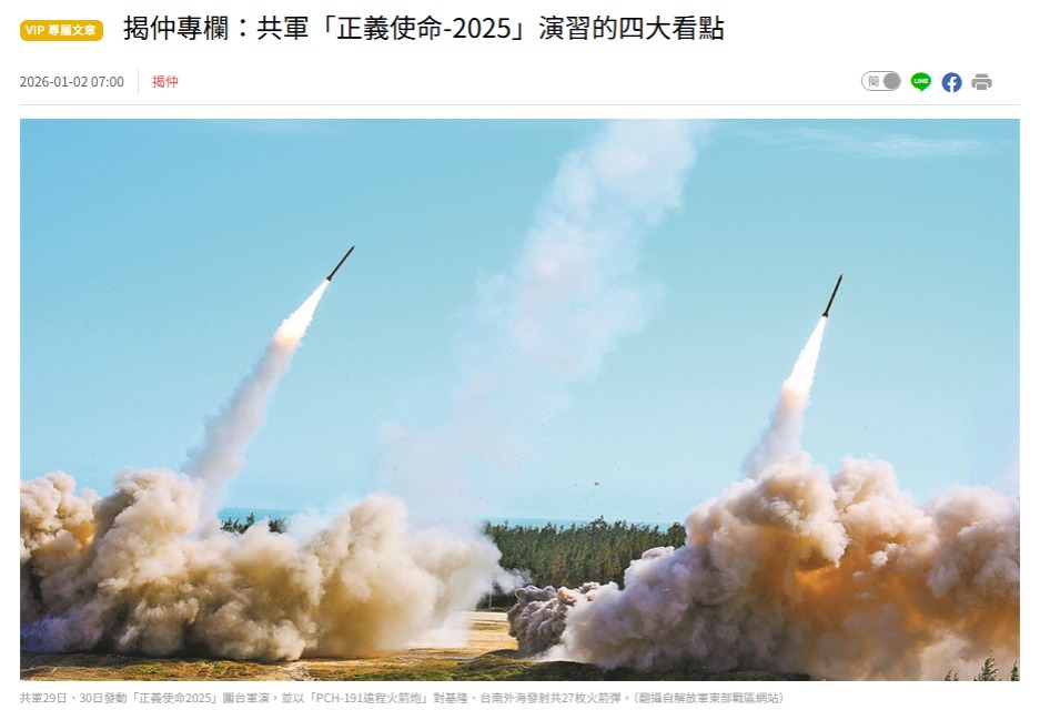 在台灣海峽空域,共軍軍機可能從29日上午6時到30日晚間近20時,實施長達44小時的跨晝夜演訓,總架次高達100架次;此一內容在2024年的兩次「海峽利劍」與2025年4月的「海峽雷霆」中,都未曾出現。