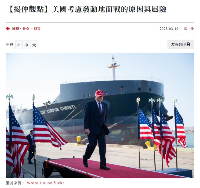 截至目前為止,儘管美國與以色列在戰場上占盡優勢,伊朗政權雖已被大幅削弱,但未出現土崩瓦解或士氣渙散的跡象,近期更開始用無人機、無人艇、水下無人載具及水雷,攻擊荷姆茲海峽的油輪與貨輪,對美國與世界各國的油價與物價帶來極大威脅。