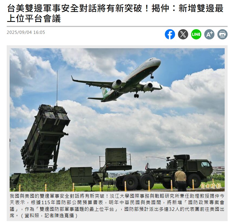 除新增「國防政策專案會議」,揭仲還指出,國防部本部也將從115年至117年,分三年編列高達4億7123萬元(1545萬美元) 的經費,執行新一輪的「臺美國防部共同合作評估案」(JFD),115年編列1億5250萬元。(圖片擷取自 自由時報軍武頻道網頁)