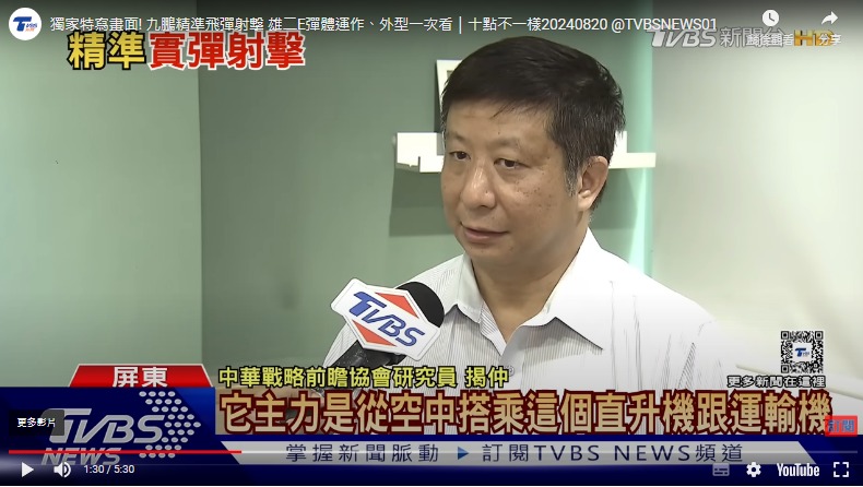 揭仲:「美方的立場,它不願意所提供的技術或者零組件,協助我們達到大幅延伸射程的目的,這樣的話也能夠讓我們就算要攻擊中國大陸目標的話,還是只能以攻擊中國大陸,東南沿海的軍事目標為主,美國的這樣做法當然是希望能夠管控,相當程度的管控台灣海峽的軍事風險。」 (圖片擷取自 TVBS 新聞網頁)