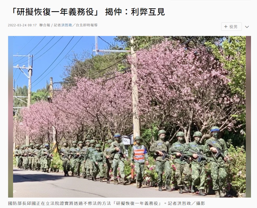 恢復1年義務役,要考量預算+幹部+訓練能量, 不能以降低志願役戰力及士兵大量減少為代價